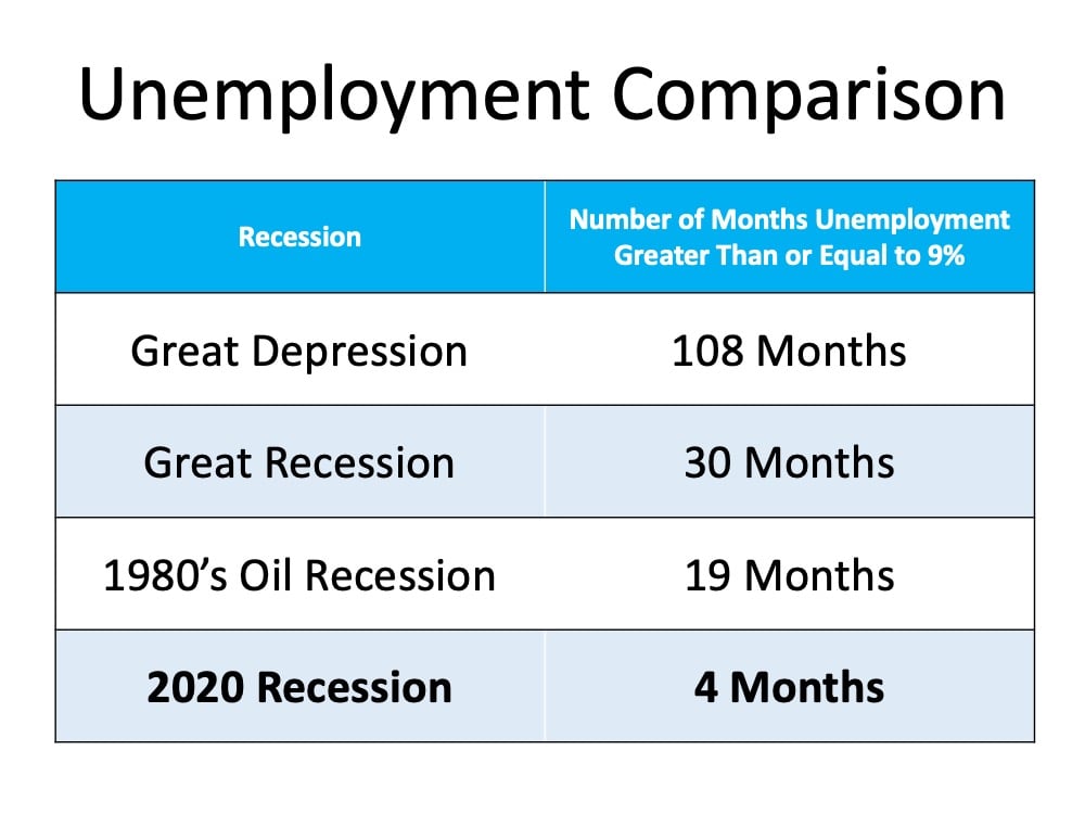 The following table shows how the current employment situation compares to other major disruptions in our economy: